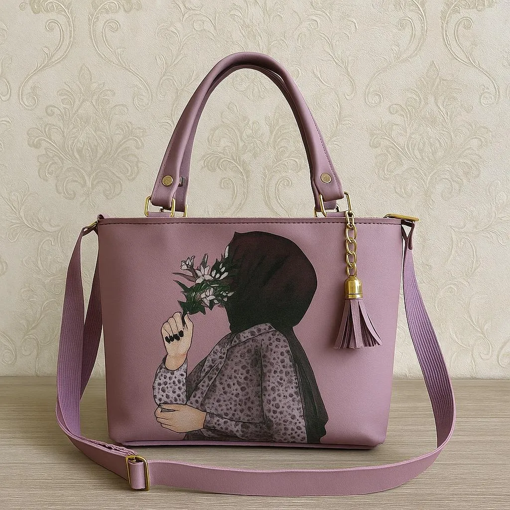 Latest Design Hand bags for girls hand bag for daily use hand bag for office use hand bag for college & university and casual use with new design of printed hijabi girl.